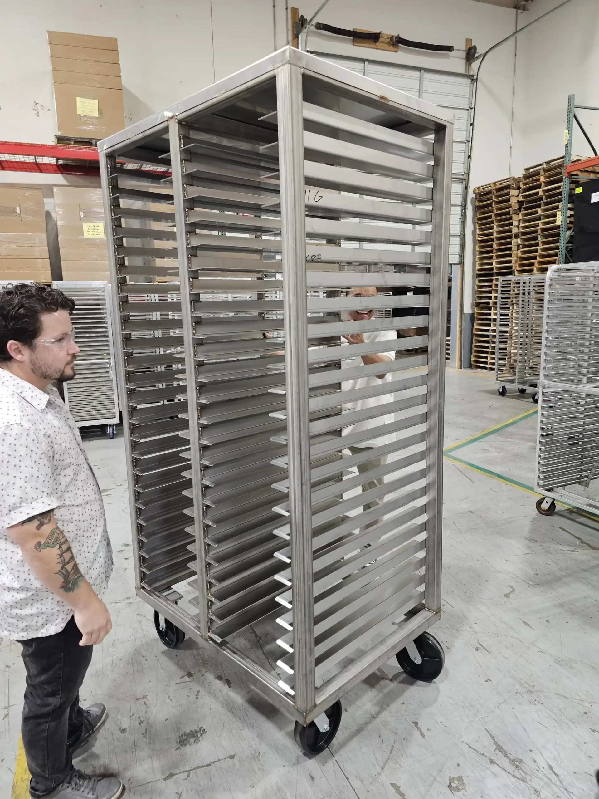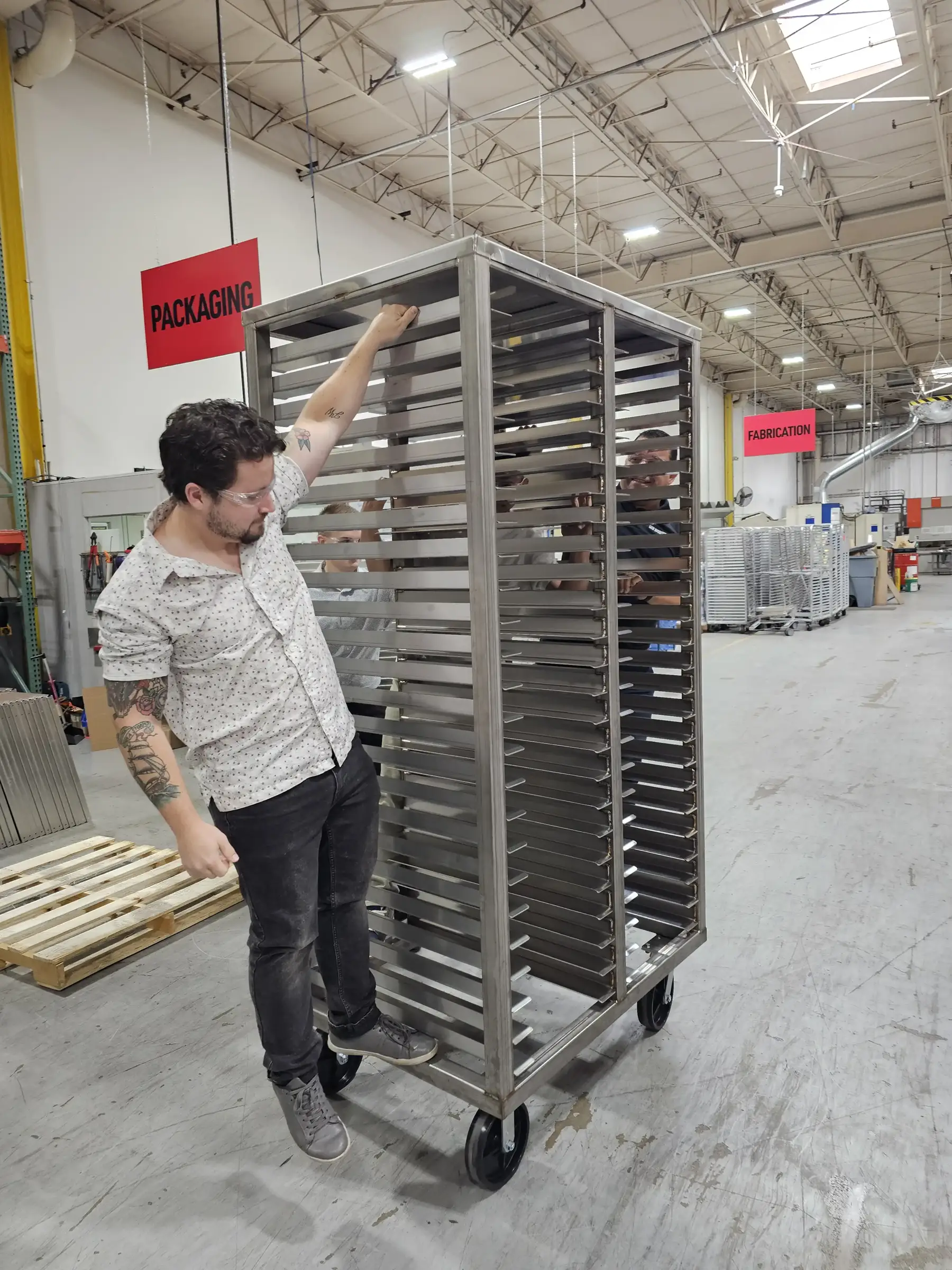 Once ABI had fed back, Eric and Freddye (and racks!) returned to Schaumburg, where a few revisions were made. Once these had been approved by a delighted Baker Boy, our expert fabricators got on with the task of making the rest of the 80 racks for our valued client.